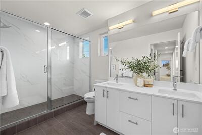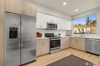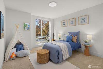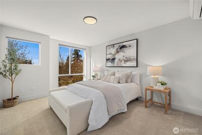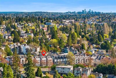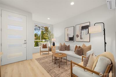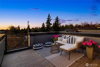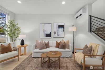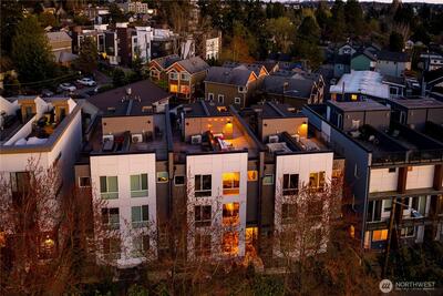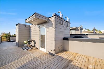 A rare opportunity in Greenwood with stunning views is now available! This modern 2020 built townhouse is boasting with natural light, soaring ceilings, new hard floors throughout the main floor that provides ample living space for daily living. The large kitchen is complete with quartz counter tops and stainless steel appliances gives you space for flexibility, storage & the ability to entertain. The second floor provides two generously sized bedrooms beaming with light from the large windows and a full bathroom. An entire floor is dedicated to the light and bright primary suite with a room that will easily accommodate a king sized bed, a huge walk in closet, full sized washer and dryer, plus the primary ensuite bath will feel like a daily trip to the spa. Escape the ordinary with incredible views on the show stopping Western facing rooftop deck that expands the entire length of the home, overlooking the stunning Olympic Mountains & Puget Sound... making every day feel like a vacation