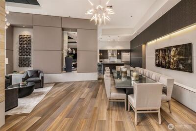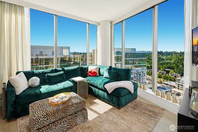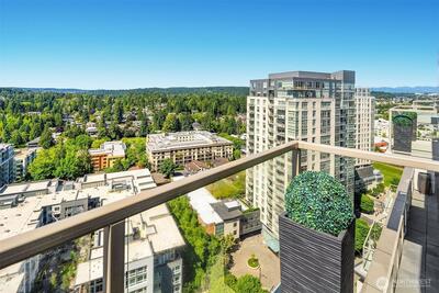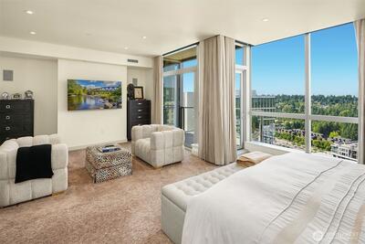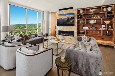 Experience elevated living in Washington Square’s largest premier condo, ideally situated in the vibrant heart of DT Bellevue. This penthouse boasts breathtaking panoramic views of the Olympic & Cascade Mountains, along w/stunning cityscape vistas. Step into sophistication with a newly remodeled designer kitchen featuring luxury appliances, custom cabinetry, & open-concept living area adorned with new hardwood flooring, designer lighting, & built-in speakers. Soaring vaulted ceilings & floor-to-ceiling windows flood the home w/natural light, creating a bright & airy ambiance. Expansive primary suite is private retreat, large walk-in closet spa-inspired bathroom. Unique to this unit is private 2-car garage + 3 parking spots & storage unit.