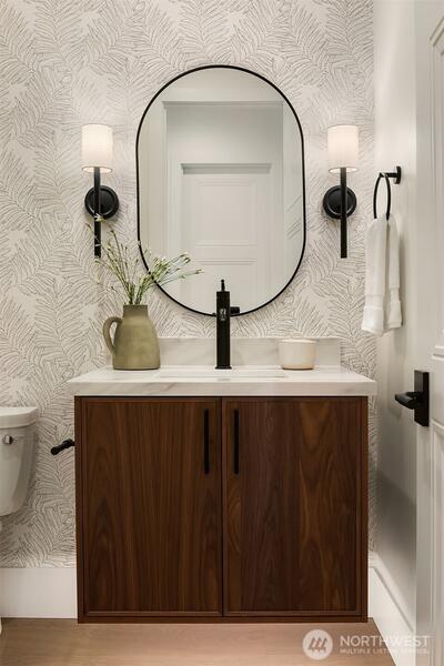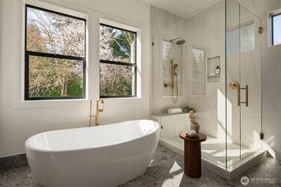 Introducing The Bonnie by Enfort Homes. Where timeless elegance meets forward-thinking design in coveted West Bellevue. Positioned just steps from Clyde Hill Elementary and Chinook Middle, this meticulously built residence delivers refined living shaped by thoughtful architecture & elevated craftsmanship. A dramatic TruStile solid-slab entry w/ multi-point locking system reveals an exceptional main level w/ 10-foot ceilings throughout, where a private executive office, guest ensuite, and an impressive great room unfold around a sculptural fluted fireplace & sophisticated dining space w/ adjoining wet bar. At the center of the home, the chef’s kitchen w/ walk-in pantry showcases Wolf and Sub-Zero appliances, integrated refrigerator, freezer, and dishwasher, a bespoke 48” hood vent & pot filler - designed for seamless entertaining & effortless daily living. Upstairs, vaulted ceilings crown every bedroom, including a remarkable primary retreat featuring a spa-inspired five-piece bath,