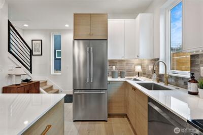 Built by Alchemy Design Build, known for thoughtful architecture and craftsmanship, this design-forward Beacon Hill cottage delivers 834 sq ft of intentionally designed living that proves great design beats extra square footage. The open main floor flows easily from the streamlined chef’s kitchen into bright living and dining spaces made for casual dinners, cozy hosting, or a perfectly curated solo reset. Engineered hardwoods throughout—no carpet, no LVP, no apologies—keep things clean, modern, and refreshingly low maintenance. Upstairs offers two serene bedrooms and a beautifully finished full bath that punches well above its weight. Vaulted ceilings, fresh finishes, and efficient ductless mini-split heating and cooling add comfort year-round. Patios and porches extend living outdoors for morning coffee or evening wine. Just moments from Beacon Hill parks, award-winning restaurants, neighborhood cafés, and light rail—so getting downtown, the stadiums, Capitol Hill, the Eastsi