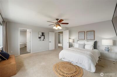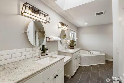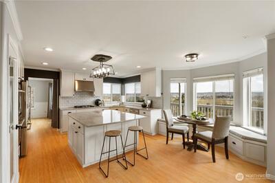 Ask about the $820,000 assumable VA loan at 2.4%—a rare and valuable opportunity! Welcome home to this stunning custom retreat with sweeping views of the Puyallup Valley and Mt. Rainier! Offering 3,600 sq ft, this home features 4 bedrooms, including a private primary suite with a 5-piece bath and its own deck. The main floor includes an office and a beautifully updated kitchen with a large island that opens to the dining area and family room—perfect for entertaining. Step onto the expansive deck to enjoy city lights and breathtaking sunsets. The lower level boasts a second living area, a private 4th bedroom with full bath, and a versatile finished flex space ideal for a wine cellar, gym, or hobby room. Situated on 1.70 acres, the property offers a spacious backyard ready for play, gardening, or relaxation. Additional highlights include an extra-large 3-car garage. Tucked on a quiet cul-de-sac, this home offers privacy while remaining convenient to shopping, schools, and major route