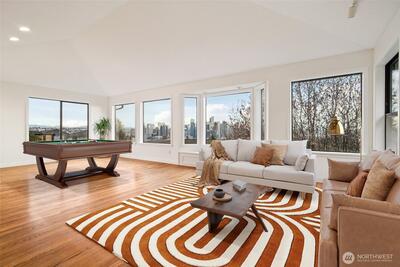 First time on the market in nearly 25 years! Exceptional Craftsman on coveted Queen Anne cul-de-sac with breathtaking downtown Seattle views. Thoughtfully renovated with red oak hardwood floors, brand new Berber carpet, and quartz countertops. Chef's kitchen features a vintage Gaggenau cooktop and charming breakfast nook. Two fireplaces, soaking tub, cedar-lined walk-in closet, and a stunning upstairs bonus living room with southern exposure showcasing the iconic skyline. Presidential 40-year roof, freshly painted interior and exterior, detached garage, and a large private yard. Minutes to Kerry Park and historic Prospect & Highland — Seattle's most celebrated neighborhood.