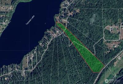 Rare 20-Acre Waterfront Legacy Estate on Tanwax Lake. Discover unparalleled privacy and serenity with this substantial dual-parcel holding in the sought-after Tanwax Rim Estates. Positioned mid-lake along the coveted south shoreline, this property offers a unique blend of developed potential and vast natural beauty. The lakefront parcel (1.38 ac) boasts 120’ of pristine frontage with power and water ready at the lot, allowing the perfect canvas for your custom luxury retreat. The adjoining 18.65-acre parcel is currently in an Open Space tax classification, providing significant tax savings while serving as a private timbered sanctuary for recreation or future vision. Enjoy world class fishing and lake life just minutes from Graham, South Hill, and Puyallup. A rare opportunity to control both the shoreline and the horizon.
