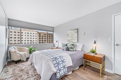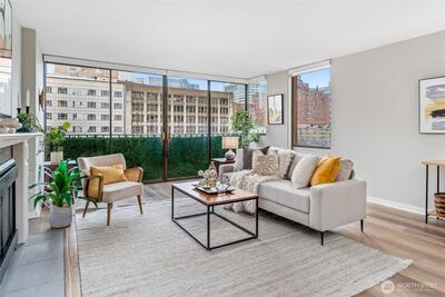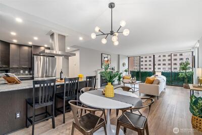 Convenience and quality converge in this spacious First Hill condo! Flooded with light from southeast-facing windows, the living and dining spaces are perfect for entertaining and everyday living. The well-appointed chef’s kitchen offers abundant counter space, bar seating, and a dedicated dining area. The primary bedroom features a generous closet, a private bath, and ample space for modern living and relaxation. The second bedroom is also spacious and works beautifully as guest quarters or a home office. Enjoy a private balcony, AC, in-unit washer and dryer, secure parking, and additional storage. The well managed homeowners association, secure parking, and freshly painted interior building spaces add peace of mind and pride of ownership. Building amenities include an outdoor deck with grills, a fitness room, a community room, and an on-site manager. If you’re looking for vibrant Seattle living in a wonderful community, located close to world-class medical facilities with easy ac