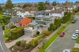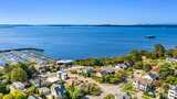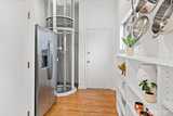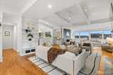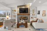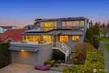 Luxury, efficiency, and location in one rare offering! Stunning elevator served home with commanding views and near zero electric bills thanks to solar and battery power. Experience refined living in this beautifully renovated residence, where exceptional craftsmanship and thoughtful design enhance every level. A private elevator connects all three floors for effortless access. This all electric home includes rooftop solar and a garage wall mounted battery system that dramatically reduces utility bills and provides quiet, seamless backup power without the need for a generator. The main level features an inviting great room with multiple seating areas, a striking fireplace, vaulted ceilings, a dining room with charming custom built ins, and a bright kitchen with generous storage, large island, and second fridge/freezer. Upstairs, the light filled primary suite and adjoining office capture sweeping water and mountain views, creating an inspiring workspace and serene retreat. The spa like