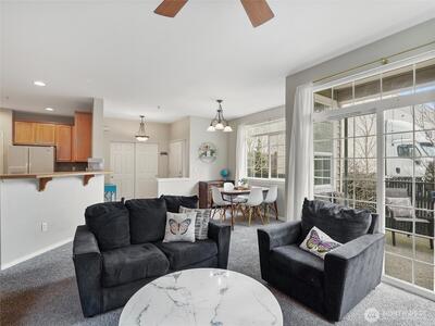 Welcome home to this beautifully updated 3-bedroom, 2-bath ground-floor condo in the heart of Fife, WA—offering the perfect blend of comfort, style, and convenience. This townhome-style condo features 1,323 sq ft of thoughtfully designed living space, including a bright, open living room with a cozy tile-surround fireplace and seamless flow into a spacious kitchen with maple cabinets, tile backsplash, and a large walk-in pantry. The primary suite includes a relaxing sitting area, en-suite bathroom, and an oversized walk-in closet, while two additional bedrooms provide flexibility for guests, a home office, or additional living space. Enjoy year-round outdoor living on your private covered patio—perfect for Pacific Northwest living in any season. Additional highlights include an oversized attached garage with direct access, in-unit convenience, and low-maintenance condo living. Ideally located near shopping, dining, and everyday amenities in Fife, with quick access to I-5 for easy c