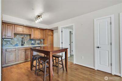 West Seattle 1-bedroom, 1-bath condo at The Dakota, a premier building in the heart of Alaska Junction. With an impressive Walk Score of 96, you’ll enjoy easy access to restaurants, shopping, street fairs, and nearby Alki Beach—making this a truly vibrant place to live. The unit has been freshly painted and features bright hardwood floors in the living room and kitchen, complemented by stainless steel appliances, granite countertops, a tile backsplash with inlaid design, and ample cabinet space with a pantry. The full bathroom includes a tub/shower, ceramic tile floors, and limestone countertops, plus the convenience of a large in-unit washer and dryer. This quiet, secure building offers a gated common garage with designated spot, a welcoming lobby, and a community rooftop deck with panoramic views of Mt. Rainier and Puget Sound. A south-facing patio off the living room completes this wonderful condo. 15 minite Downtown commute, bus line nearby, routes 50, 55, 128 & Rapid C.