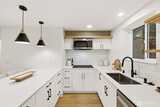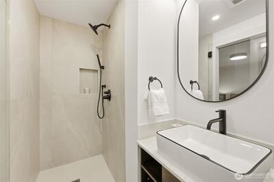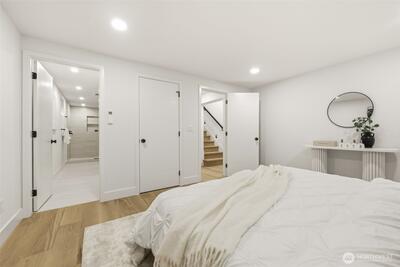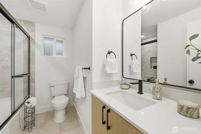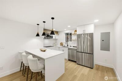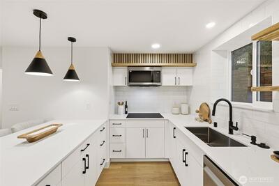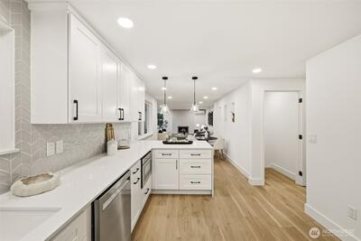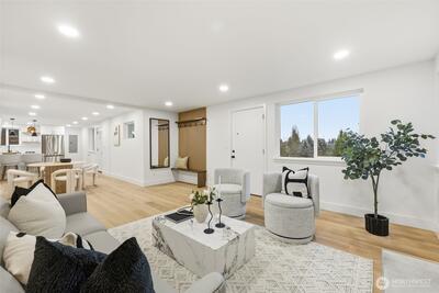 Beautifully updated home in Lake Forest Park offering modern comfort and exceptional flexibility. The main level is designed for everyday living, featuring a bright open-concept layout with a full main kitchen, spacious living area, and access to a large deck ideal for entertaining. This level includes a comfortable primary suite with an en suite bath, along with additional bedrooms and a versatile room perfect for a home office. The lower level features the home’s main primary suite, offering a private retreat with a spa-like en suite bath, a welcoming living area, and a second kitchen ideal for entertaining or extended stays. A second bedroom on this level adds flexibility, making the layout well-suited for multi-generational living. Thoughtfully designed for comfort and flow throughout. A two-car EV-ready garage adds convenience and future-forward value.