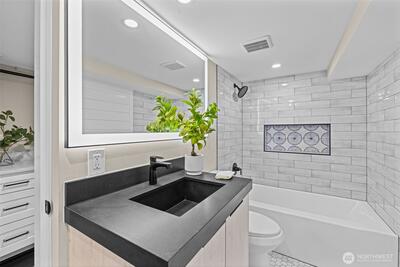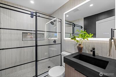 Sophisticated West Seattle home with designer finishes, sleek lines and incredible light. Open-concept living and dining flow to a chef’s kitchen with luxury appliance package, waterfall island and custom cabinetry. Well-appointed bedrooms and spa-inspired baths feature walk-in shower, statement tile and warm metal accents. Relax in the summertime with A/C and enjoy the flexible spaces which are ideal for media, guests or work. Multiple clear stained decks and a private, fenced yard creates a seamless indoor-outdoor living. Large driveway that can accommodate up to six vehicles. Minutes to Alaska Junction, parks, transit and all your favorite West Seattle spots. Comes with a Pre-Inspection and 1 year home warranty.