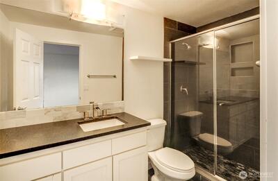 Great entry into homeownership, a rare two-bedroom, top-floor condo in Heatherstone with vaulted ceilings and a spacious balcony, move-in ready for a first home. Well-located condo in a sought-after community. Fresh paint from ceilings to walls; 2 bedrooms with walk-in closets; an open kitchen with granite countertops; a spacious living room; 2 baths; a large utility room; and a storage space. assigned parking and ample visitor parking for guests. Great amenities, outdoor swimming pool, exercise room, and clubhouse. The HOA covers utility and common-area maintenance. Walking distance to Crossroads Mall, minutes drive to DT Bellevue, Microsoft, and freeways I-90 and I-405. Sought-after Bellevue schools