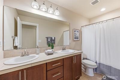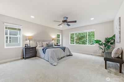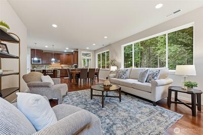 Nestled into a quiet, private setting within the highly regarded Redmond Ridge, this stunning 4-bedroom, 2.5-bath home offers a peaceful retreat in one of the Eastside's most sought-after master-planned communities. Thoughtfully designed streetscapes, mature landscaping, and nearby parks create an inviting neighborhood feel — while this particular homesite feels especially secluded and serene as it backs to a greenbelt. Inside, a spacious, light-filled floor plan and stylish finishes make this home truly move-in ready. The elegant kitchen features slab countertops, appealing cabinetry, stainless steel appliances, and a walk-in pantry — all opening to comfortable living and dining areas primed for everyday living and entertaining. Heading upstairs past the wrought-iron banisters awaits generous bedrooms, a bonus room, and a luxurious 5-piece primary bath. A handy upstairs laundry room limits your trips up and down stairs and keeps your "steps" on the beautiful surrounding trails.