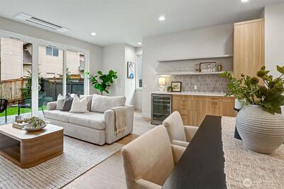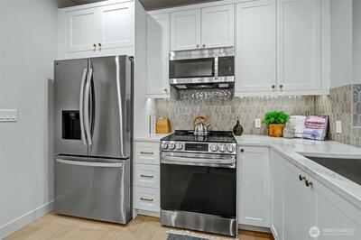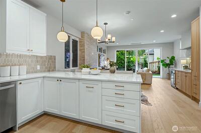 Stylish new construction offering a seamless blend of contemporary design and comfortable living. This thoughtfully designed 2-bedroom, 2.5-bath home features high-quality finishes and a bright, modern feel throughout. The chef’s kitchen is equipped with premium appliances, quartz countertops, and custom cabinetry. The open-concept main level provides spacious living and dining areas centered around a cozy fireplace, along with a sleek dry bar and convenient powder room. Upstairs, vaulted ceilings create an airy atmosphere in the light-filled primary suite, complete with a spa-inspired bathroom and heated floors. Step outside to a private patio and fully fenced yard surrounded by lush greenery—ideal for entertaining or relaxing. Two off-street parking spaces included.