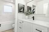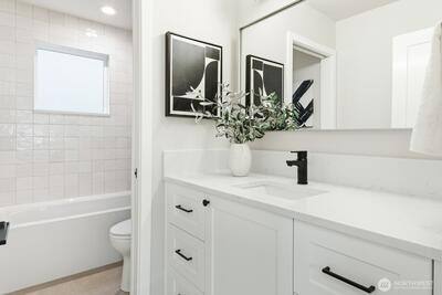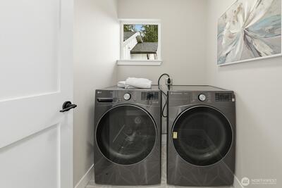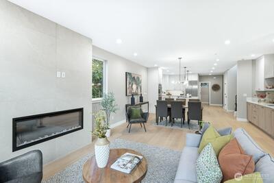 Experience contemporary Northwest style paired with timeless luxury in this stunning new construction home. The main level showcases a gourmet kitchen with a quartz island, custom cabinetry, premium appliances including a double oven, and a sleek wet bar. Enjoy a formal dining room, an inviting living room with a fireplace, and a dedicated office—ideal for working or studying from home. Upstairs features vaulted ceilings, four bedrooms, two full bathrooms, and a convenient laundry room with washer and dryer included. The spacious primary suite offers a spa-inspired bath with a soaking tub, oversized shower, heated floors, and a walk-in closet. The lower level provides additional flexibility with a second living room or media space, a full bath, and access to a patio and fully fenced backyard—perfect for relaxing or entertaining. A mudroom connects to the EV-ready two-car garage. For added comfort and peace of mind, the home is also equipped with a gas-powered generator for backup p