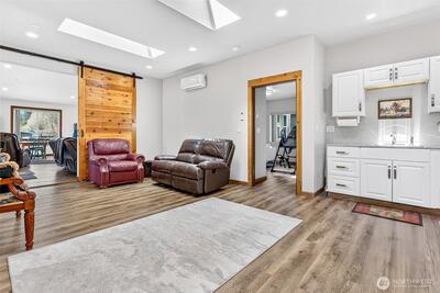 Country paradise & serenity on 5+ acres, 30 minutes from Sea-Tac International Airport! Convenient to everything Seattle/Bellevue have to offer, yet with more wildlife & trees than neighbors. Mt. Rainier views from upper property, 3-bedroom Northwest-style home with 4-bedroom septic. Private ADU on the edge of main home, most of which was newly built in 2021/2022. Inviting wood-luxury prow, covered slate patio entry. Single-level; open-concept floor plan; heat pumps; hot/cool air options; 5-yr. new roof; high-speed Internet; extensive recent upgrades; gorgeous cabinets. Gated entrance; fences surrounding a classic place; quality greenhouse; fertile gardens w/ decade-plus invested in perfecting organic soils. Trees & natural wood chip trails; exceedingly generous garage/storage space; many outbuildings; oversized 4+ car garages; more highlights than listed. Whether you dream of organic gardening, horses & goats, pheasants & chickens, ATVs & motorbikes, woodworking or establishing a sea