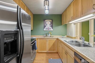 Tucked into a lush courtyard in the heart of Queen Anne, this 1bd/1ba condo is your peaceful retreat in the city. Start your mornings with coffee on the private covered patio, unwind in the evening with a book in the garden courtyard, or stroll to nearby parks, theaters, & cafés. Inside, enjoy in-unit laundry (new W/D!), a generously sized bedroom & SS appliances. The pet-friendly building offers secure garage parking, EV charging, gym, media lounge, BBQ area, bike storage & extra storage. Well maintained building and professionally managed HOA. Just blocks to Kinnear Park, Seattle Center, dining & transit—urban living with a tranquil twist, a perfect base for exploring the city while preserving a serene haven at home.