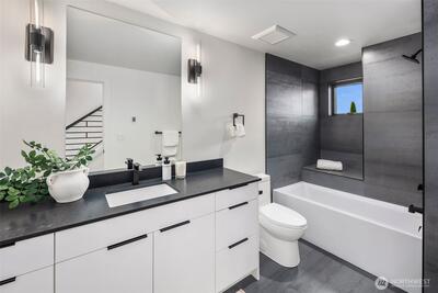 Come see this Brand new Luxurious custom build in the heart of Ruston. This home is 5 Bdrm 3.5 bath with an office on the main! Open concept floor plan w/ luxury engineered flooring throughout the home, beautiful gas fireplace in the living room area, designer kitchen w/ SS appliances, quartz counters & large island, heated tile throughout the bathrooms, Primary bedroom with a breathtaking view of the commencement Bay, its own 5pc bath with walk-in closet, 2 car garage, covered outside deck with fully fenced yard, additional deck on 2nd floor. Professionally designed landscaping with irrigation front and back yard, located just minutes away from Point Ruston, Point Defiance park, beaches, coffee shops, waterfront market and more.