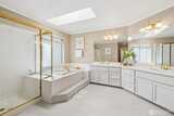 Rare opportunity in desirable Highpointe neighborhood. You will love living here! Spacious 5 bed 2.5 bath, 2820 sq ft home with multiple living areas includes bedroom on the main floor (or use as office). As you enter, you’re greeted by the spindle staircase, real hardwoods and dramatic vaulted ceiling. Formal living and dining rooms feature wainscoting, crown molding, coved ceiling in the dining room, brand NEW carpeting and a cozy fireplace. Large eat-in kitchen has granite countertops, SS appliances, island with gas cooktop, tons of cabinet space and opens to the family room with a stunning fireplace makeover! Laundry room & updated powder room complete the first floor. The sizeable primary suite features a charming bay window nook with built-in seating and magnificent chandelier. The 5-piece ensuite features TWO walk-in closets, soaking tub, separate shower, large vanity and new tile flooring. Three additional good-sized bedrooms and a full remodeled bath with quartz countertop,