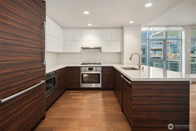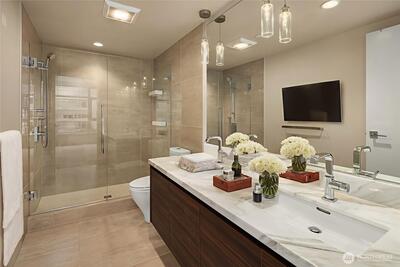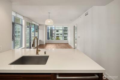 Indulge in elevated urban living with this modern 2-bedroom, 1.75-bath residence at Insignia, Seattle’s premier luxury condominium community. This sophisticated home showcases an open-concept design, a serene primary suite, and expansive windows framing stunning city and water views. Facing the tranquil courtyard, it offers the perfect balance of vibrancy and privacy. Two dedicated garage spaces and world-class amenities set Insignia apart: an indoor pool, sauna, rooftop terraces with unrivaled panoramas, lush garden retreats, and 24-hour concierge and security. Situated in the heart of Belltown, steps from Pike Place Market, the new waterfront park, and a short commute to South Lake Union, this is downtown living at its finest.