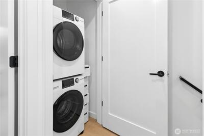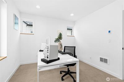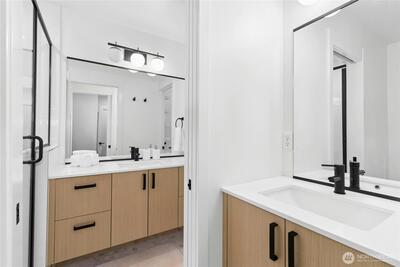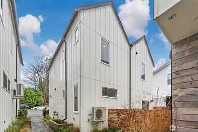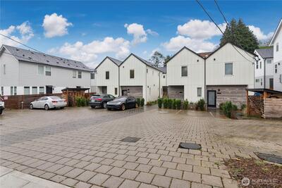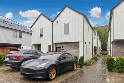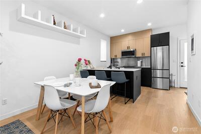 Welcome to Meridian Park Cottages! Modern and move-in ready, this 2 bed, 2 bath home built in 2023 offers the perfect blend of comfort, efficiency, and thoughtful design. The open-concept main level flows easily between the kitchen, dining, and living areas, creating a welcoming space for everyday living and entertaining. A heat pump provides efficient heating and cooling year-round. Upstairs features a spacious primary suite along with a second bedroom that works well as a guest room or home office, both offering great natural light and pleasant territorial views. A dedicated parking space located just outside the front door adds everyday convenience, with nearby bike racks providing a secure option for cyclists. Ideally located just minutes from Northgate and the light rail, commuting and getting around the city is easy by road or pedestrian overpass. Enjoy close proximity to everything the area has to offer including the Kraken Iceplex, shopping, dining, entertainment, transit hub,