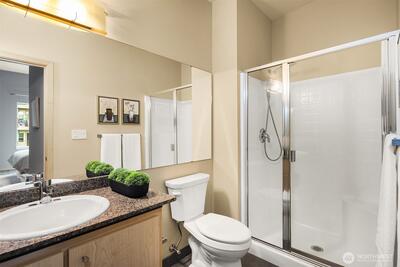 Boutique setting in the heart of Judkins Park! Unbeatable location! Unbeatable access! Natural light steals the show in this rare 2-bed/1.75-bath corner unit — vaulted ceilings and oversized corner windows pour sunshine into every corner of the open kitchen, dining, and living area. Peek a boo view of mountains & the city! The kitchen shines with new stainless-steel appliances, granite countertops, and a perfect breakfast bar. The primary suite offers a large customized walk-in closet, ensuite bath. The second bedroom is ideal for guest space, or your WFH setup. Secondary bathroom houses full size stackable washer/dryer for every day convenience. Step outside and everything is at your fingertips -food, groceries, parks, recreation-all essentials within walking distance. Judkins Park Light Rail Station ( .5 miles) opening imminently, putting the Eastside just 12 minutes away & downtown Seattle in 10. Not using mass transit? I-5, and I-90 minutes from your door. 1 assigned parking sp