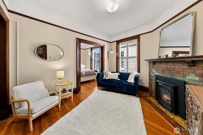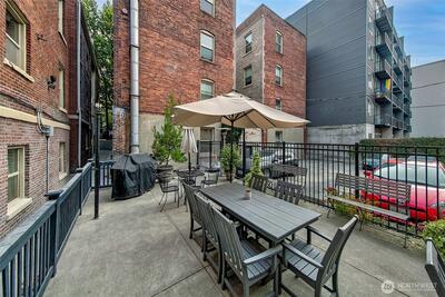 Top floor unique floorplan that allows no shared walls at the elegant Pittsburgh; brownstone style condos in lower Queen Anne. Location is iconically Seattle; two blocks to monorail- one stop to the Light Rail station. Tranquil spaces w/ beautiful old world architecture throughout. Gorgeously updated condo with built ins, history & charm in every nook. High ceilings, original fir floors, rich trim, extra large dining/den, gas fireplace & additional storage. Don't miss the welcoming BBQ courtyard that brings the community together. Recent renovations to the building give peace of mind for this next chapter. Walkscore is near perfect; groceries, top restaurants, waterfront parks, Pike Place, Met Market & Climate Pledge a stones throw away.