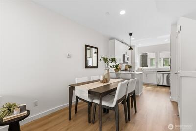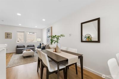 Best deal in the neighborhood! Modern 3-bedroom, 2.5-bath townhouse with an attached garage in Seattle's desirable Olympic Hills. Built in 2020 and freshly updated for new owners in 2026, this well-maintained 1,200 sq ft home offers a bright, open-concept layout with contemporary finishes, stainless steel appliances, and an in-unit washer and dryer for everyday convenience. The private backyard area is great for pets or gardening. The location is hard to beat, with a Safeway directly across the street, easy access to bus lines 75 and 348, and just minutes to I-5 and express lanes. You're only 12 minutes from Downtown Seattle and about 5 minutes from Northgate's shopping, dining, and Light Rail access, with Jackson Park Golf Course nearby, making this an ideal blend of comfort, accessibility, and lifestyle.