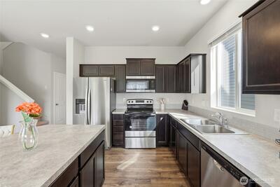 Welcome home to Lipoma Firs, a sought-after master-planned community in Puyallup known for its parks, community clubhouse, and welcoming neighborhood feel. Step inside to an open-concept main level where the spacious kitchen—with stainless steel appliances and ample pantry storage—flows effortlessly into the bright living and dining areas, creating the perfect setting for everyday living and gatherings. Upstairs, a versatile bonus room offers the flexibility for movie nights, a playroom, or a quiet home office. The spacious primary suite provides a relaxing retreat, featuring a beautifully upgraded walk-in closet with custom built-in shelving and a private bath with dual vanities and a walk-in shower. Two additional bedrooms and a full bathroom offer comfortable space for guests. Outside, enjoy the fully fenced backyard—ideal for weekend BBQs, relaxing evenings, or letting pets play freely. Complete with a two-car garage and located near community parks within the highly sought-a