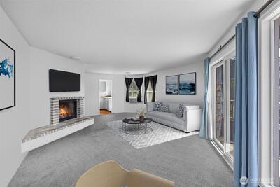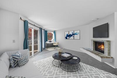 Newly refreshed building! This private corner residence lives more like a home than a typical condominium, offering an exceptional blend of comfort and thoughtful design. The well-appointed floor plan features a spacious primary suite with an ensuite three-quarter bath, creating a quiet retreat. The second bedroom easily functions as a guest room or an ideal work-from-home office, enhanced by captivating views. The living room is filled with natural light and anchored by a charming wood-burning fireplace, creating a warm yet airy atmosphere perfect for everyday living or entertaining. Additional amenities include EV charging at the dedicated parking space, a large storage unit, bike storage, an exercise room, project room, and a relaxing dry sauna. The building itself has undergone extensive recent upgrades, including new concrete siding, windows, a newer roof, and refreshed common areas— with the assessment fully paid. Enjoy the convenience of in-unit laundry, secure garage parking,