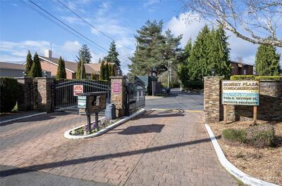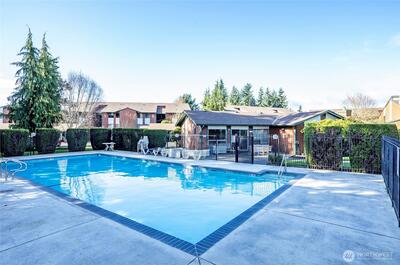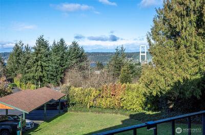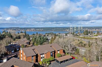 Welcome home to this second-floor condo showcasing Puget Sound and Olympic Mountain scenery with beautiful sunset views! This 2-bedroom, 1.75-bath home offers a bright and comfortable living space that opens to a private deck with storage—perfect for relaxing and enjoying the natural backdrop. The spacious primary suite features a walk-in closet, remodeled bathroom, and a stunning mahogany accent wall that adds warmth and character. Fresh interior paint throughout, a dedicated laundry room, and a newer water heater add convenience and peace of mind. Enjoy life in a well-maintained gated community with resort-style amenities including a clubhouse, outdoor pool, fitness room, tennis courts, and scenic walking trails throughout the grounds. The location is hard to beat—situated in desirable North Tacoma just minutes from Hwy 16, the Narrows Bridge, Titlow Park, local dining, shopping, and an easy commute to downtown Tacoma, Seattle or JBLM.