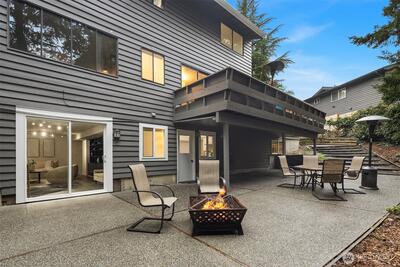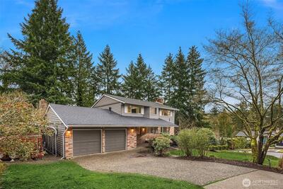 Prime Bellevue living in highly sought-after Newport Hills within the award-winning Bellevue School District: Newport Heights Elem, Tyee Middle, Newport High. Situated on a generous 13,100 SF corner lot, this 5 bed, 3 bath, 3,400 SF home offers exceptional versatility, including a 1,290 SF full Mother-in-Law suite with private entrance, SECOND kitchen, living room, bedroom & bath. Ideal for rental income, Airbnb, or multi-generational living. The main level is thoughtfully designed with a spacious kitchen and dining nook, formal dining, dedicated office, and multiple living areas including a welcoming family room that opens to the deck overlooking the fully fenced backyard. Upstairs includes 4 bedrooms, highlighted by a primary suite with ¾ bath. Lower level functions as a true separate living space with full flexibility. Recent updates include brand new roof, fresh exterior paint, and new carpet throughout. Walking distance to Newcastle Commons, Coal Creek Village, YMCA, grocery stor