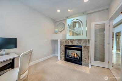 $200,000 price reduction! Meticulously maintained custom home in the highly sought-after Microsoft / Grass Lawn neighborhood near Bridle Crest Trail. This exceptional residence offers 5 spacious bedrooms, each with its own attached bath & large closet, including a convenient main-level bedroom with en-suite bath. The primary suite features a luxurious retreat w/ large walk-in closet/dressing room, covered balcony, Jacuzzi soaking tub, makeup vanity, towel warmer, & a stunning three-sided fireplace. The main floor includes a private office/den w/ a two-sided fireplace, formal living & dining rooms, & a beautifully designed kitchen featuring Canyon Creek & European Beech cabinetry, high-end appliances, large granite island & counters, corner bar, command center desk, two instant hot water dispensers, & drinking water filtration. Travertine flooring & granite surfaces add elegance throughout. Enjoy a spacious great room, open loft, high ceilings, & four fireplaces. Comfort is ensured with