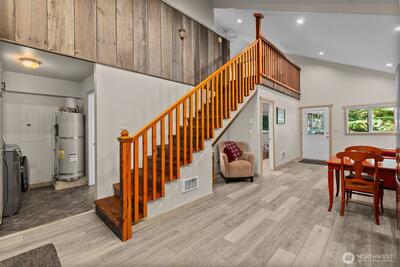 This charming Lake Cushman retreat offers the perfect blend of summer fun and year-round living. Whether you're looking for a relaxing getaway or a full-time home, this property delivers comfort, flexibility, and access to everything the Pacific Northwest has to offer. Enjoy the privacy and community amenities of ownership, including boating, kayaking, family friendly park, and a dock—all less than a 5-minute walk from your front door. Inside, the thoughtfully designed home features an open floor plan with a main-level bedroom, full bath, laundry, and a spacious great room ideal for gathering. The upper level includes a lofted family room, an additional room currently used as a bedroom, and a newly added half bath—perfect for guests or extra living space. A ductless mini-split heat pump ensures efficient comfort in every season. Step outside to a property built for both relaxation and recreation, featuring a large covered patio, garden areas, firepit, and a gated entrance