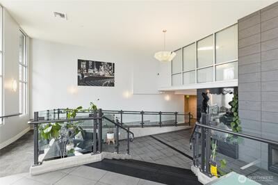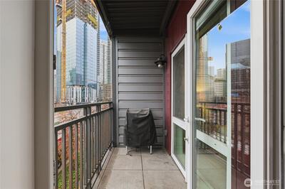 Modern city living at The Marselle Condominiums in the heart of downtown Seattle! This beautifully updated 1 bedroom + large private den, 1.5 bath home features a sought-after open floor plan with walnut hardwood floors, slab granite countertops, stainless steel appliances, and a spacious kitchen island with storage. The versatile private den with its own half bath is perfect for a home office or guest space. Enjoy floor-to-ceiling windows, high ceilings, in-unit washer and dryer, and a private balcony with city views. The generous primary suite includes custom built-in closets and an en-suite bath. The building offers exceptional amenities including a state-of-the-art fitness center, yoga studio, community lounge, and an expansive rooftop terrace with pet relief area and breathtaking 360° views of the Space Needle, Lake Union, downtown skyline, Queen Anne, and the Cascades. Parking space included. Located just steps from Seattle Center, dining, shopping, entertainment, parks, and tra