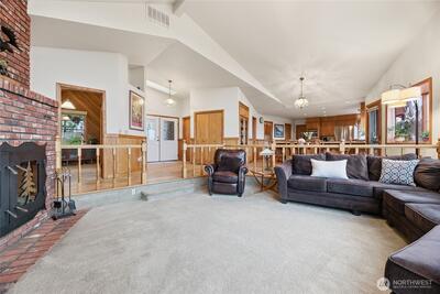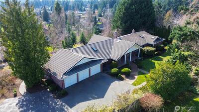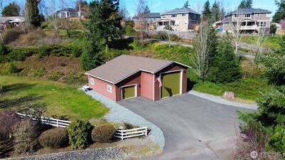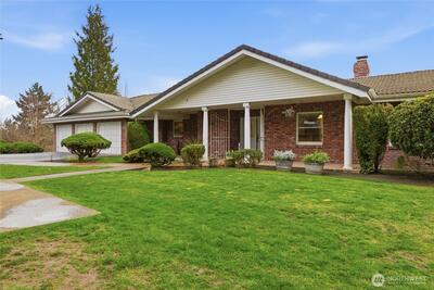 Perched above the landscape with sweeping views of Mount Rainier and the surrounding foothills, this architecturally designed Northwest retreat invites you to slow down, breathe deeply, and savor the beauty of the changing skies. From sunrise glow to dramatic weather rolling across the valley, every day brings a new natural masterpiece right outside your windows. Thoughtfully positioned for privacy and tranquility, the home feels worlds away—yet it’s conveniently close to town, offering the perfect balance of seclusion and accessibility. Expansive windows, warm natural materials, and a layout that embraces the outdoors create a sense of calm the moment you step inside this classic, one-level home. This estate property includes a 4-bedroom, 2-1/2-bath brick rambler with an attached 3-car garage, and a detached 1,696 sf shop/garage with room for your boat, RV, extra vehicles and more. Buyer to verify future ADU potential of property.