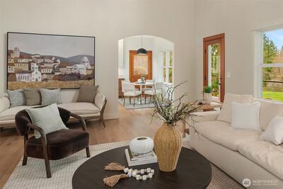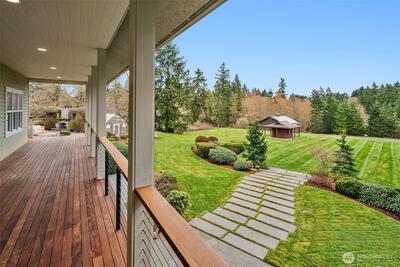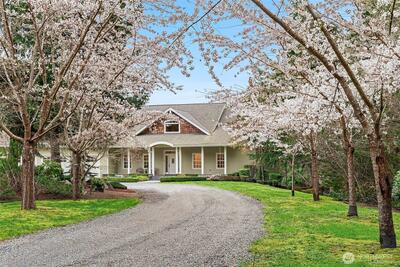Never before on the market, this grand Vashon Island estate offers a rare combination of privacy, beauty, and scale on 10 fully fenced acres with private trail connections to Island Center Forest. Custom-built in 2006 and lightly lived in, the home features 5 bedrooms, 3.5 baths, and expansive spaces designed for luxury living, entertaining, and hobbies. The new designer kitchen is the showpiece, with custom Canyon Creek cabinetry, Taj Mahal quartz counters, concealed hood, natural oak island, pantry with floor-to-ceiling built-ins, and designer lighting. Grand vaulted ceilings, fumed oak hardwood floors, and a natural stone fireplace elevate the main living spaces, while the media room with wet bar, billiard room, theater room, and dedicated gym add remarkable flexibility. The main floor primary suite offers exterior access, walk-in closet, and en suite bath. Outdoors, enjoy Ipe decks, mature gardens, greenhouse, irrigated grounds, orchard, and outdoor fireplace and dining loggia drap