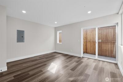 Live in one of Seattle’s most beloved neighborhoods in this stylish standalone home in Wallingford. Designed with modern simplicity in mind, the open main floor flows easily from the living area into a polished kitchen featuring quartz countertops, stainless steel appliances, and custom cabinetry—perfect for everyday living or hosting friends before heading out to the neighborhood. Natural light fills the living space, creating a warm, comfortable place to relax. Upstairs, two generously sized bedrooms with vaulted ceilings feel bright and airy, complemented by a beautifully finished bathroom with refined tile work and contemporary fixtures. Step outside and enjoy everything Wallingford is known for—local cafés, favorite neighborhood restaurants, boutique shops, and nearby parks just minutes away. With the added convenience of your own dedicated off-street parking space, this home offers a rare mix of modern design, walkable living, and everyday practicality in the heart of the