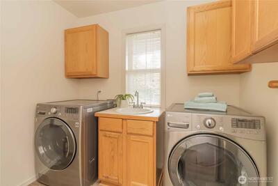 Welcome Home to Weathervane community - centrally located to University Place Town Center, Fircrest Golf Course & Country Club, freeways, shopping, and schools. This beautiful 3-bed, 2-bath townhome features a huge great room with a cozy fireplace, dining off the kitchen, breakfast bar, attached garage (plus HUGE additional parking on the side), tool/hobby shop, and TONS of storage! Gorgeous expansive deck with entries off the primary bedroom and the kitchen to enjoy thick NW woods and the birds outside. Separate primary bathroom entry off the bedroom. Feels very private and secluded, besides being in the midst of it all. All appliances stay. Amazing home!