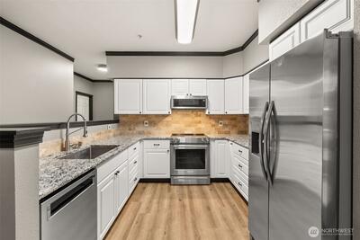 Welcome to this bright and inviting main floor condo that blends comfort, convenience, and an easy, open layout. Fresh interior paint gives the home a clean, updated feel, while the spacious living area flows naturally from the kitchen, creating a connected space perfect for everyday living. The kitchen features high-end stainless steel appliances and stylish new light fixtures that add a modern touch to the space. The home features generously sized bedrooms, including a primary suite with its own private bath and a spacious walk-in closet. Residents of the community enjoy access to great amenities, including a clubhouse and fitness center—perfect for relaxing or staying active. Ideally located in Puyallup, this home is close to shopping, dining, and local parks, offering a great balance of comfort and convenience.