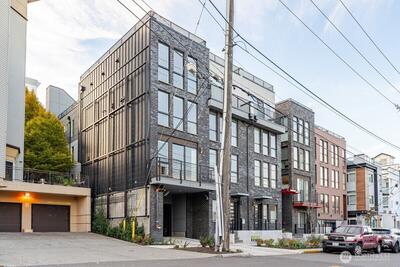 Luxury Townhome in Prime Capitol Hill LocationModern design and high-end finishes define this thoughtfully crafted home in the heart of Capitol Hill. Quality masonry construction with premium interior upgrades throughout. Features include Bellmont oak cabinetry, oak hardwood floors, California Closets, designer paint and plumbing fixtures, and European appliances by Bertazzoni and Liebherr. Energy-efficient systems include Mitsubishi mini-splits, Coeur d’Alene windows, superior air filtration, and above-code insulation.Private rooftop deck with sustainable Kebony wood offering Mt. Rainier views. Steps to Capitol Hill dining, shopping, and everyday conveniences.