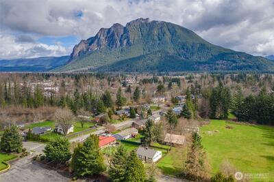 Enjoy breathtaking views of Mt. Si from this beautifully maintained, turnkey home just a short stroll from the charm of historic North Bend. Perfectly located with easy access to local shops, restaurants, parks, and everyday amenities, this home offers both convenience and small-town character with the stunning Cascade foothills as your backdrop. Inside, thoughtful updates create a bright and welcoming atmosphere with an open, airy feel throughout. The living spaces are designed for both comfort and style, featuring modern finishes, durable luxury vinyl plank flooring, and abundant natural light. The beautifully updated kitchen serves as the heart of the home, complete with sleek countertops, contemporary cabinetry, and newer stainless steel appliances—perfect for everyday living or hosting friends. The main level features two bedrooms, a den/office space and a tastefully renovated full bathroom, offering easy single-level living. Upstairs, an additional versatile space provides endl