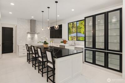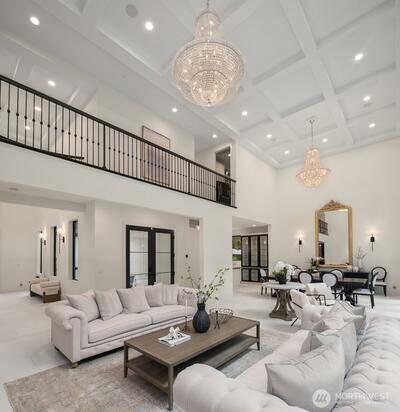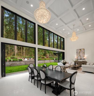 A custom built estate spanning 6,467 sqft across two buildings in a gated, deeply wooded and private 2.83 acre lot. Located in the renowned Lake WA School District, this sanctuary offers effortless access to tech commutes and elite dining. Thoughtfully designed to harmonize with its old-growth evergreen backdrop, a grand two-story foyer with dazzling chandelier leads to the great room where soaring coffered ceilings and a two-story wall of glass invite an abundance of natural light. The gourmet chef’s kitchen is a masterwork with Thermador appliances, double ovens, two dishwashers, and bespoke cabinetry. Designed for ultimate flexibility, this estate includes 3 bedrooms, a private mother-in-law studio with full kitchen, a separate office, and multiple bonus rooms. The primary wing serves as a retreat with a spa-inspired 5-point shower and boutique walk-in closet. A technological marvel, the home includes a comprehensive smart home system and dedicated server room. Beyond the main hou
