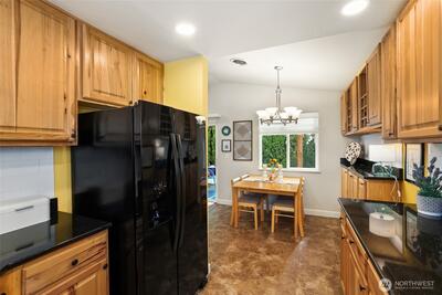 Welcome to Greenwood Estates! This beautifully updated rambler in the heart of Covington offers the perfect blend of modern upgrades and timeless comfort. Step inside to discover a bright, open floor plan featuring brand-new LVP flooring that flows seamlessly through the living spaces. The heart of the home is the inviting living room, complete with a cozy wood-burning fireplace insert—perfect for chilly Northwest evenings. The kitchen is a chef’s delight, boasting custom cabinetry that provides ample storage and a high-end feel. Down the hall, you'll find well-appointed bedrooms and updated finishes throughout. Functional features include a spacious 2-car garage with plenty of room for vehicles and storage and a connected standby generator, providing reliable backup power and year-round peace of mind. Outdoor living is where this property truly shines. The large, level backyard is fully fenced for privacy and pets, featuring a substantial covered patio designed for year-round ente