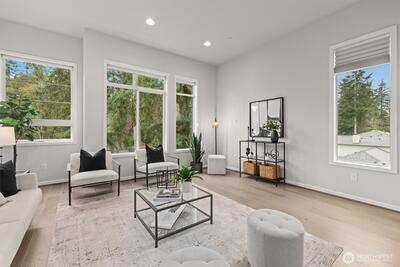 Experience comfortable, low-maintenance living in this bright end-unit townhome with a private rooftop deck in a well-connected Kirkland location. Large windows fill the home with natural light, while the functional layout features two spacious bedrooms, each with an ensuite bath and walk-in closet. Recent interior paint updates and a mini-split system enhance both style and year-round comfort. The 2-car garage offers additional storage, complemented by generous guest parking. Residents enjoy access to a community garden and playground, creating a welcoming neighborhood setting. Ideally located near Lake Washington, Juanita Beach Park, and the Denny Park Loop Trail, with nearby shopping, dining, and everyday conveniences. Quick access to key transportation routes makes commuting to Bellevue, Redmond, and major employers efficient. Located within the Lake Washington School District and no rental cap provides added flexibility and investment potential.