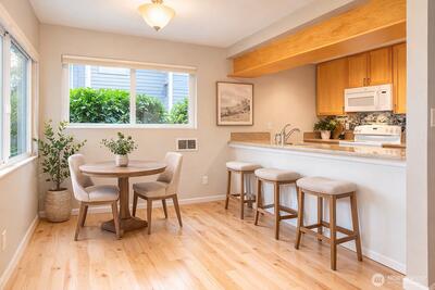 Prime Bellevue Location! – Affordable & Convenient Condominium Living. Welcome to Toria Wens Condominiums, a highly sought after 4 condo building, ground floor corner unit where homes rarely come available. Residents appreciate the privacy, quiet setting, and strong sense of community. This beautifully remodeled condo is completely move-in ready. Interior upgrades include engineered hardwood flooring, custom maple cabinetry in the kitchen and bathroom, quartz countertops, updated hardware, and a new water heater. Fresh interior paint creates a bright, welcoming space. The home also features an in unit washer and dryer, generous closet space, and an additional exterior storage closet outside on the back patio. Enjoy the private territorial view! The building is well maintained with excellent exterior paint and a new roof installed last year. Enjoy low HOA dues, no special assessments, friendly management, and strong HOA financials. Excellent location just minutes from transit, shoppin