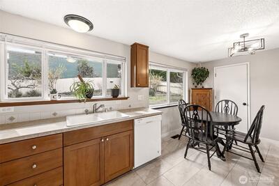 Charming 4BR, 1.75BA home in Robin Hood Estates! This well-maintained 1.5-story property features abundant natural light, a floor-to-ceiling fireplace, and a spacious kitchen with plenty of storage. The main level includes three bedrooms and a full bath, while the large primary suite above the garage offers its own bath and bonus space—ideal for guests or a home office. Enjoy a fully fenced backyard with a patio, plus a long driveway with RV/boat parking. No HOA. Conveniently located near the golf course, JBLM, and within walking distance to schools.
