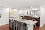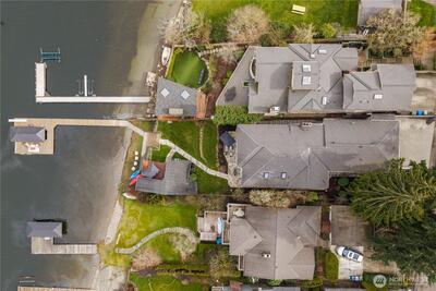 Rare opportunity to experience refined waterfront living in Bellevue. Impressive 5,490-square-foot estate is designed to capture the beauty of the lake from its most important living spaces. At the center of the home, the chef’s kitchen becomes a true showpiece, featuring expansive stone counters, custom cabinetry, professional-grade cooking appliances, & oversized entertaining island all perfectly positioned to overlook the water. Walls of windows frame breathtaking lake views while the open design flows effortlessly into generous gathering spaces ideal for entertaining. Primary suite is an exceptional private retreat, with retractable glass wall, offering remarkable scale with its own sitting area, serene lake views, & spa-inspired bath highlighted by a soaking tub positioned to take in the scenery. Throughout the home, rich hardwood floors, custom wrought iron railings, natural stone finishes, & soaring ceilings create a sense of architectural character & warmth. Outside, 51 feet