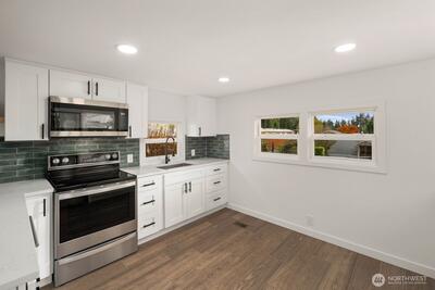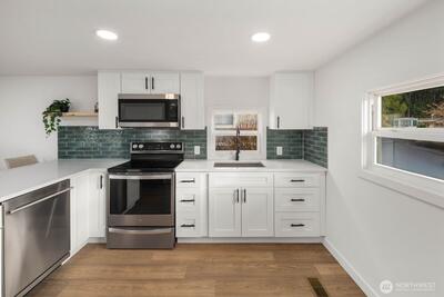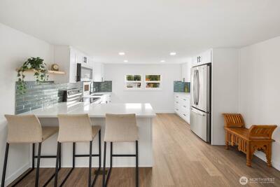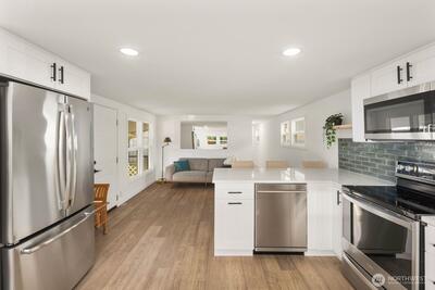 Experience modern living in this stunning 55+ fully renovated home in Bothell—just minutes from I-405 for easy commuting and access to local amenities. Every detail has been upgraded, featuring premium finishes, energy-efficient windows, new stainless steel appliances, luxury vinyl plank flooring, and custom cabinetry. Enjoy sleek new lighting, a refreshed bathroom, and a spacious kitchen designed for comfort and style. Outside, relax in your landscaped yard or entertain on your patio—this home truly boasts all the bells and whistles for turnkey living in a prime location.