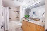 This light filled Tribeca condo is an in-city jewel. You'll enjoy the open concept with 9-foot tall ceilings, bamboo flooring, newer appliances, and a spacious sleeping alcove. The kitchen, with a gas stove and granite counters, is open to the living room, making it ideal for entertaining. The living room has an electric fireplace, and large west-facing windows, allowing natural light to stream in. Full bathroom includes the washer and dryer. Secure garage with a covered parking space close to your front door and no steps are needed. The Tribeca has a fantastic rooftop deck for year round enjoyment. Great in-city location with all the amenities you need at your doorstep: Met Market, CVS pharmacy, fabulous restaurants & bars, Uptown Cinema, and more. Climate Pledge Arena is just 3 blocks away. Walking distance to Seattle Center and the waterfront, and on several bus lines.