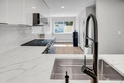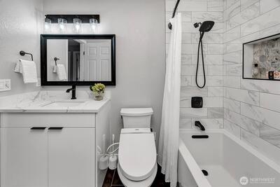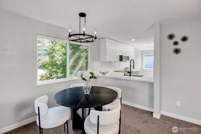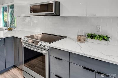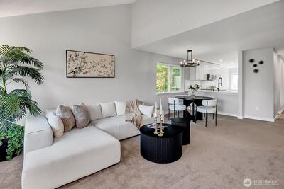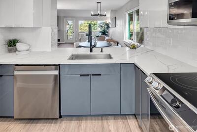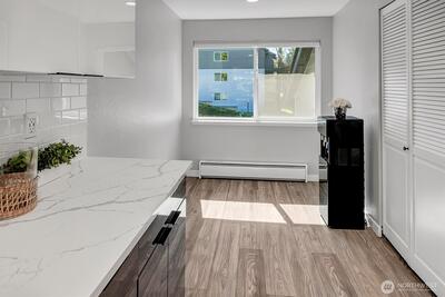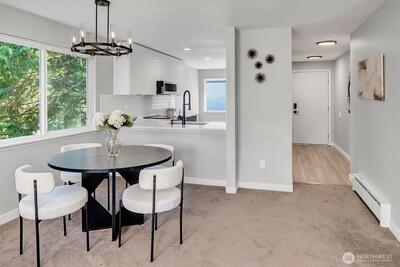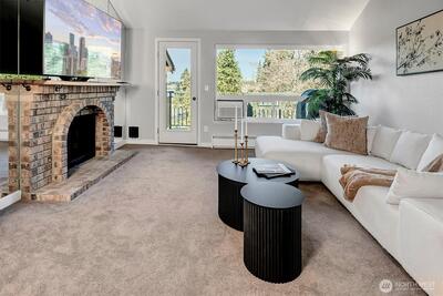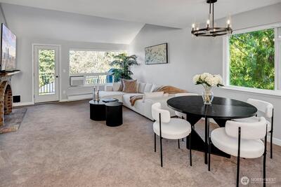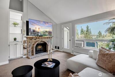 Turnkey top-floor end unit in the highly desirable Cedarwood community, right in the heart of Totem Lake! Set within a recently renovated complex featuring new siding, windows, roof, and major exterior improvements, the community offers fresh curb appeal that feels like new. Beautifully remodeled and fully move-in ready, this stylish home offers privacy, natural light, and modern comfort on a quiet street just moments from everything. Step inside to a thoughtfully updated interior featuring gorgeous kitchen with eating space, sleek European-style two-tone cabinetry, quartz countertops, stainless steel appliances, luxury vinyl plank flooring & a spacious living room with newer carpeting, centered around a cozy wood-burning fireplace. The generous primary suite offers abundant closet space & a fully upgraded bathroom showcasing stunning tile work, modern fixtures and a premium Toto washlet, while the spacious second bedroom adds flexibility for guests, a home office or a workout space. E