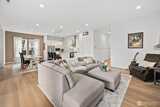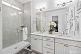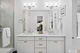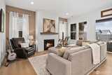 Located in the sought-after 55+ Regency at Ten Trails community by Toll Brothers, this elevated modern farmhouse offers nearly $50K in upgrades and has been lightly lived in. The thoughtfully designed Sirius floor plan features 2 bedrooms and 2 bathrooms, centered around an expansive great room with an upgraded fireplace and floating mantle, creating a warm and inviting space for everyday living and entertaining. The kitchen showcases white cabinetry with gold hardware, a gas range, large center island, generous cabinetry, and a spacious pantry, all seamlessly connected to the main living areas. Upgraded wide plank flooring and classic wainscoting add to the home’s refined feel, while a media den niche provides the perfect work from home setup. Oversized glass doors open to a covered back deck with fireplace and gas hookup for grilling, offering sunset views and effortless indoor/outdoor living. The private primary suite features a beautifully appointed bathroom with a frameless w